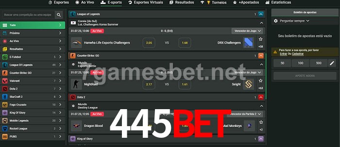 O 445bet oferece uma grande seleção de opções de apostas em e-sports com probabilidades competitivas